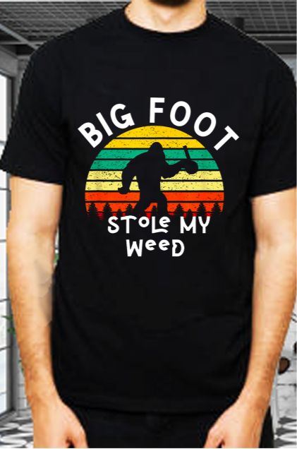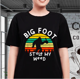 The custom DTF print on the shirt features a vibrant and detailed design with the Biggest Big Foot that stole my weed design . The DTF printing process ensures that the design is durable and long-lasting, with a soft-to-the-touch finish that won't crack or fade easily.