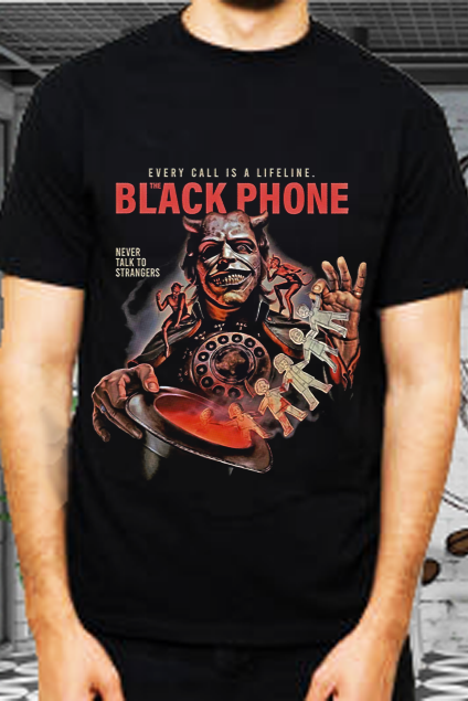 The custom DTF print on the shirt features a vibrant and detailed design, featuring this rare find half tone design for breathability of the Black Phone t shirt. The DTF printing process ensures that the design is durable and long-lasting, with a soft-to-the-touch finish that won't crack or fade easily.