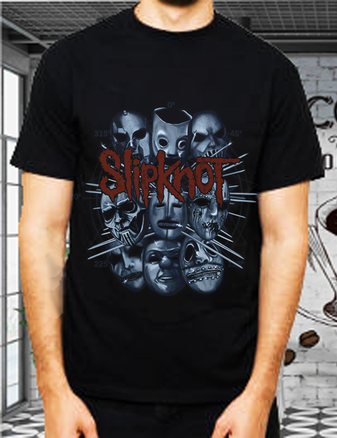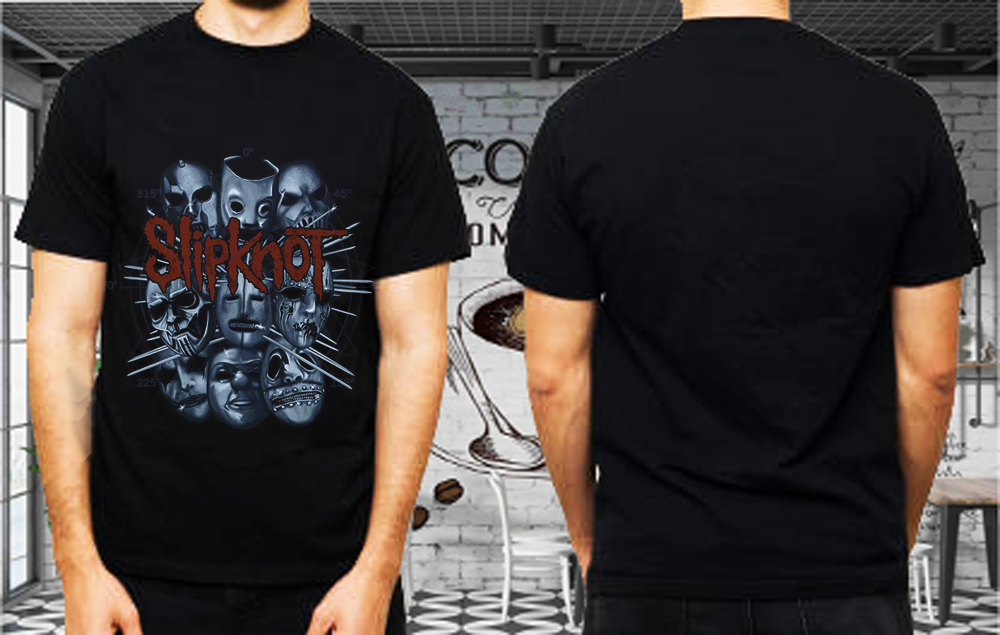 The custom DTF print on the shirt features a vibrant and detailed design on front with the slipknot band logo The DTF printing process ensures that the design is durable and long-lasting, with a soft-to-the-touch finish that won't crack or fade easily.