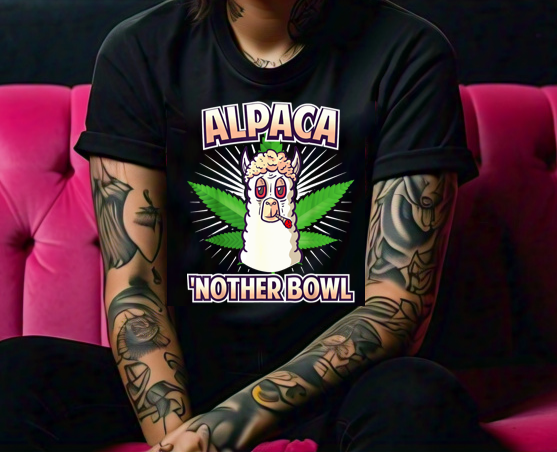 The custom DTF print on the shirt features a vibrant and detailed design on front with an Alpaca logo The DTF printing process ensures that the design is durable and long-lasting, with a soft-to-the-touch finish that won't crack or fade easily.