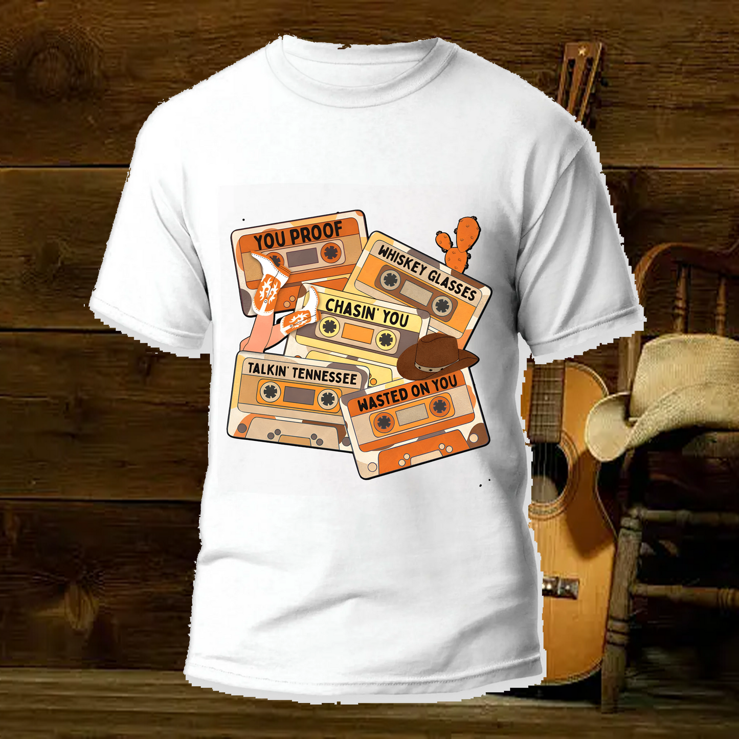 The custom DTF print on the shirt features a vibrant and detailed design with a Country retro tapes design. The DTF printing process ensures that the design is durable and long-lasting, with a soft-to-the-touch finish that won't crack or fade easily.