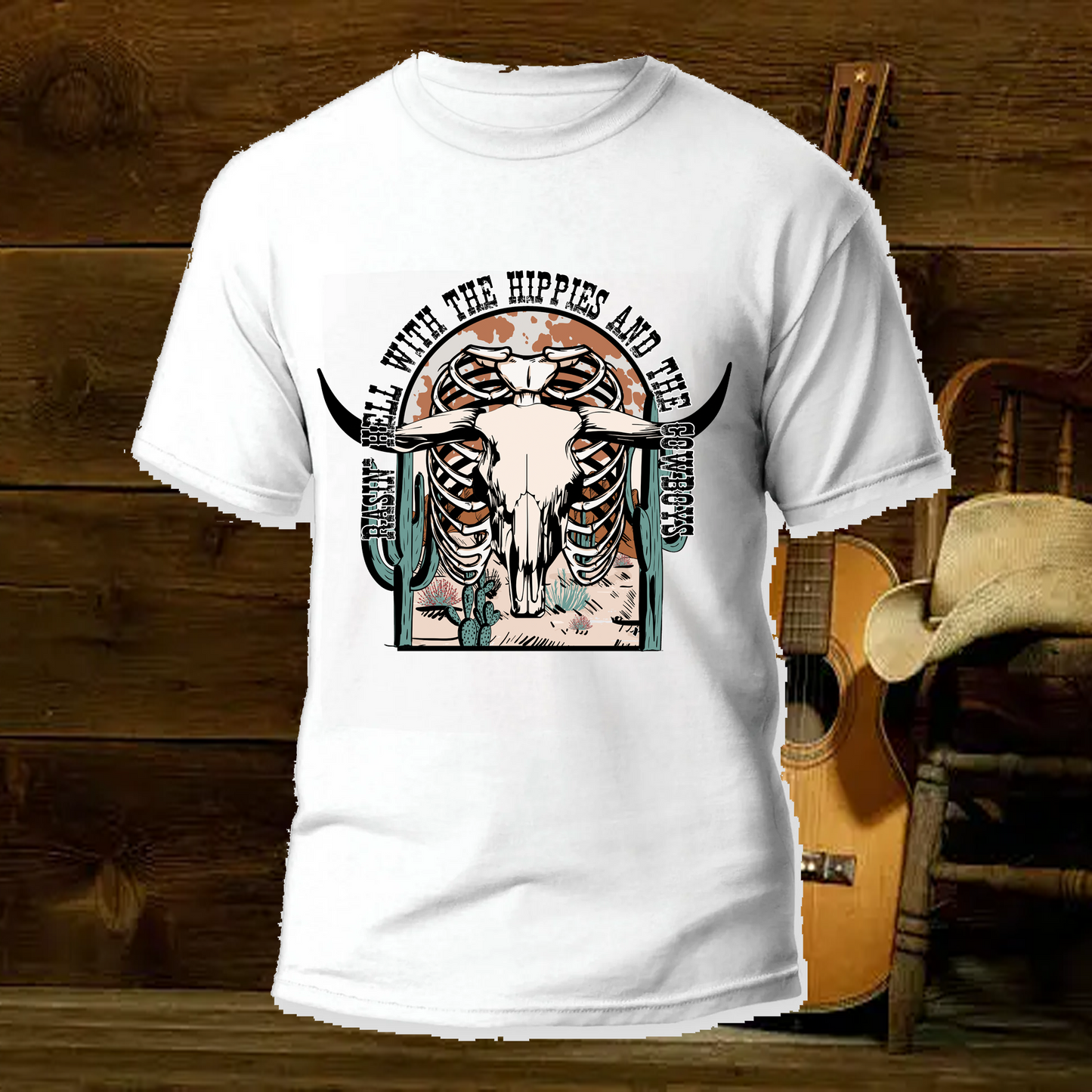 The custom DTF print on the shirt features a vibrant and detailed design with " With the Hippies" design. The DTF printing process ensures that the design is durable and long-lasting, with a soft-to-the-touch finish that won't crack or fade easily.
