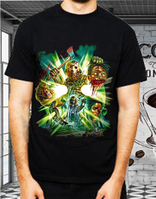 The custom DTF print on the shirt features a vibrant and detailed design on front with Horror glass shatter logo The DTF printing process ensures that the design is durable and long-lasting, with a soft-to-the-touch finish that won't crack or fade easily.