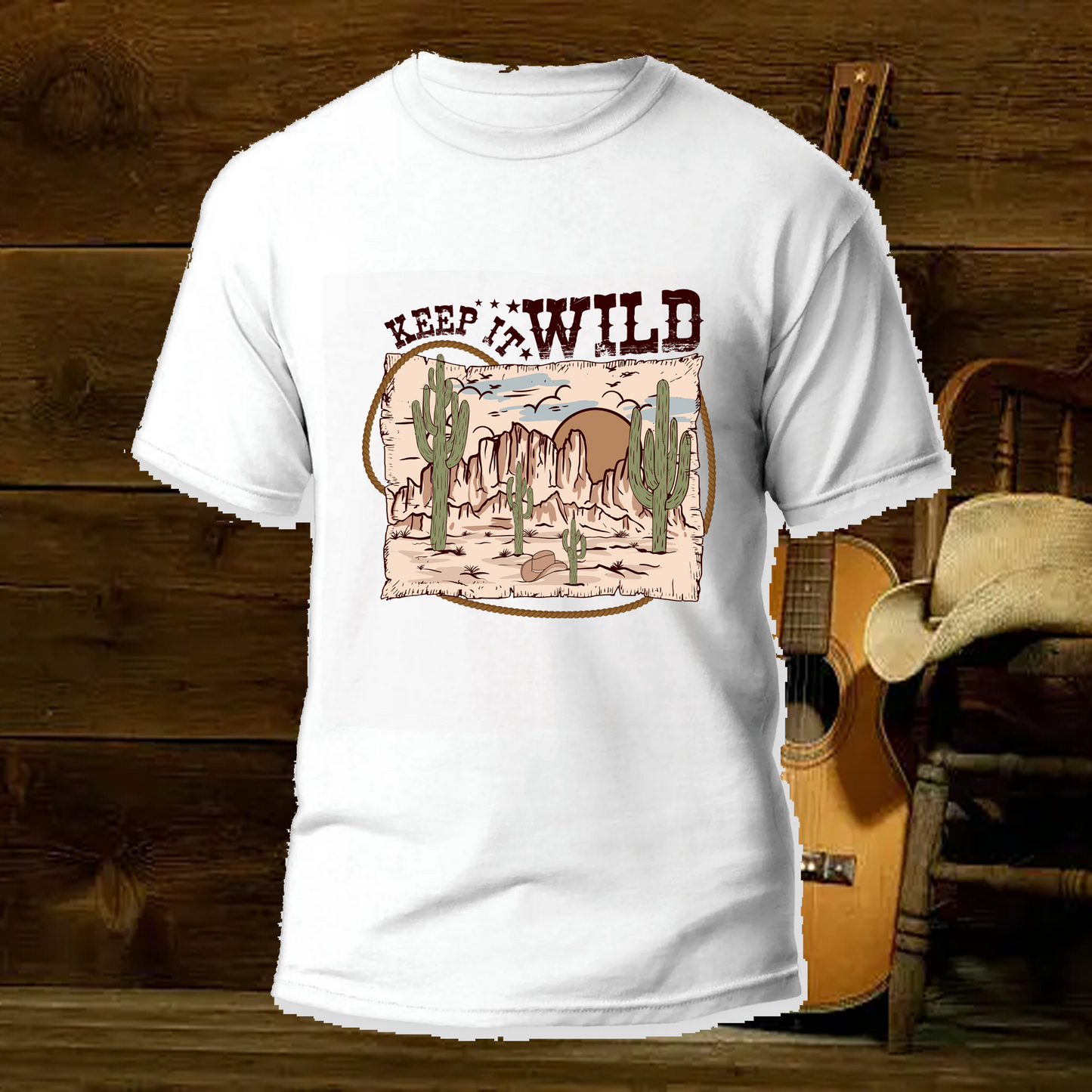 The custom DTF print on the shirt features a vibrant and detailed design with " Keep It Wild" design. The DTF printing process ensures that the design is durable and long-lasting, with a soft-to-the-touch finish that won't crack or fade easily.