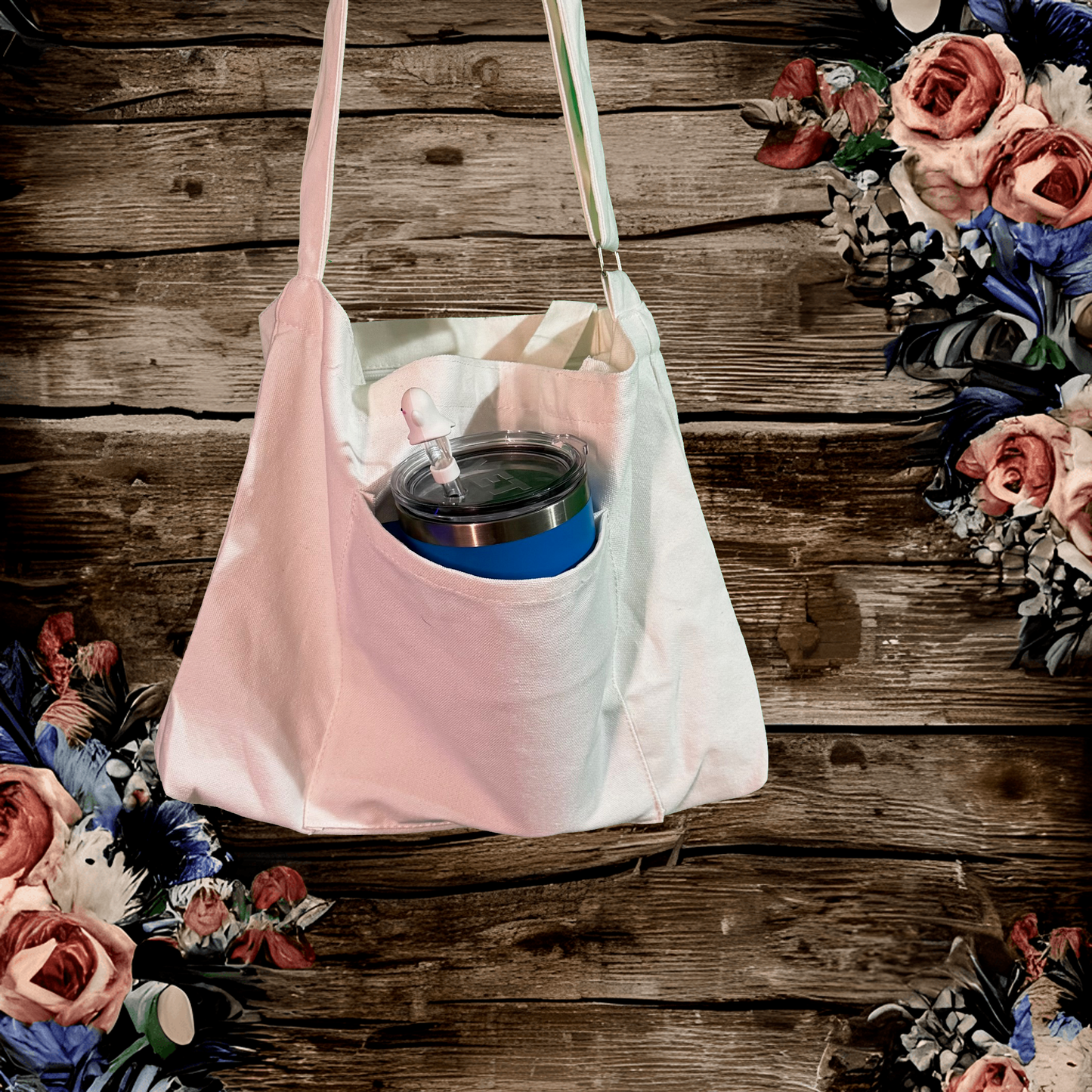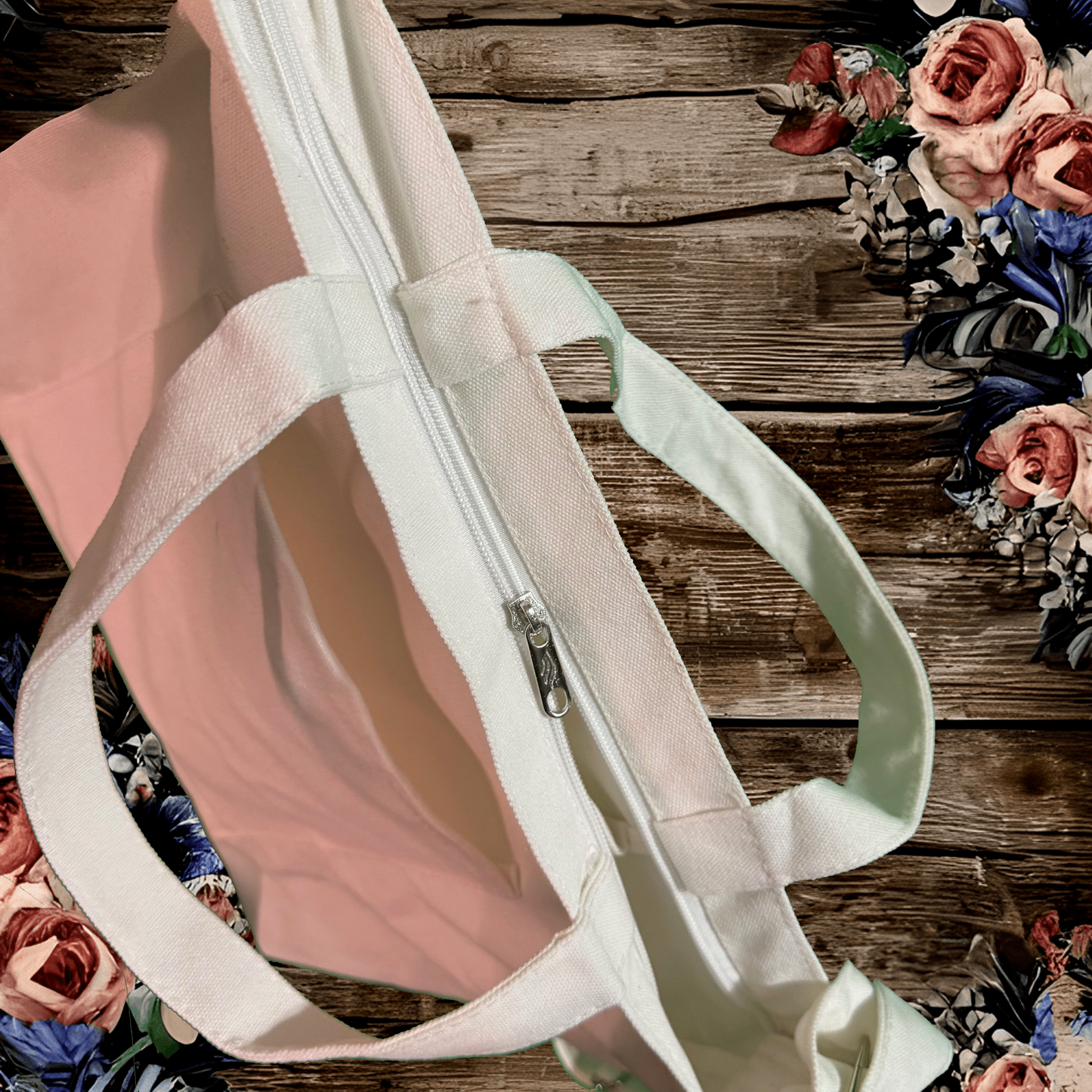 The Recycled Cotton Zippered and adjustable strap Tote with a custom DTF (Direct-to-Film) print is a stylish and eco-friendly bag made from high-quality recycled cotton.