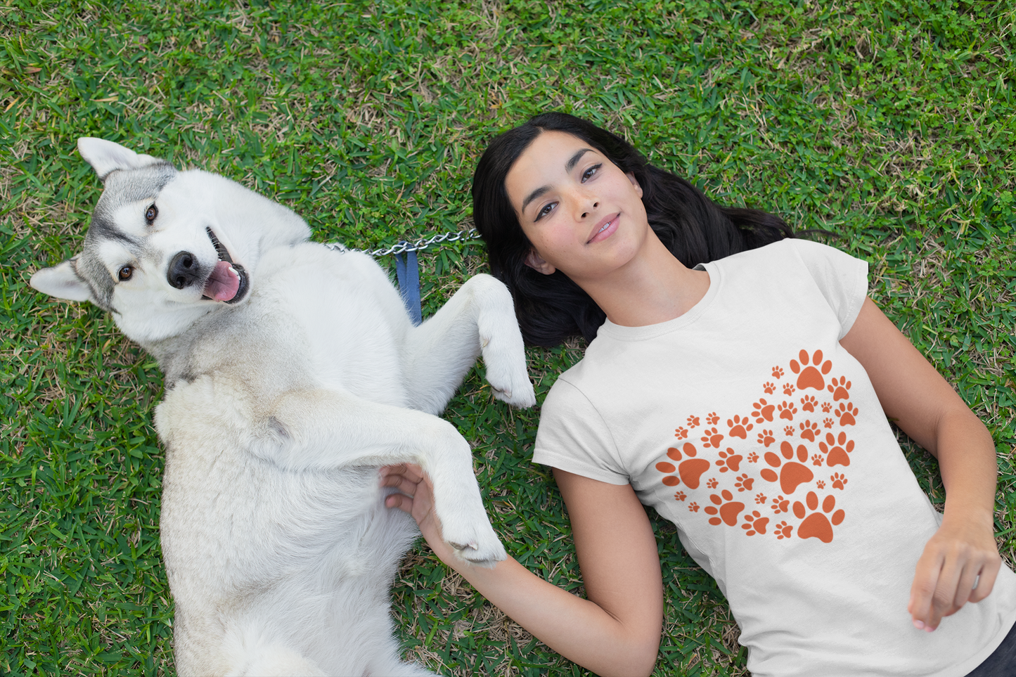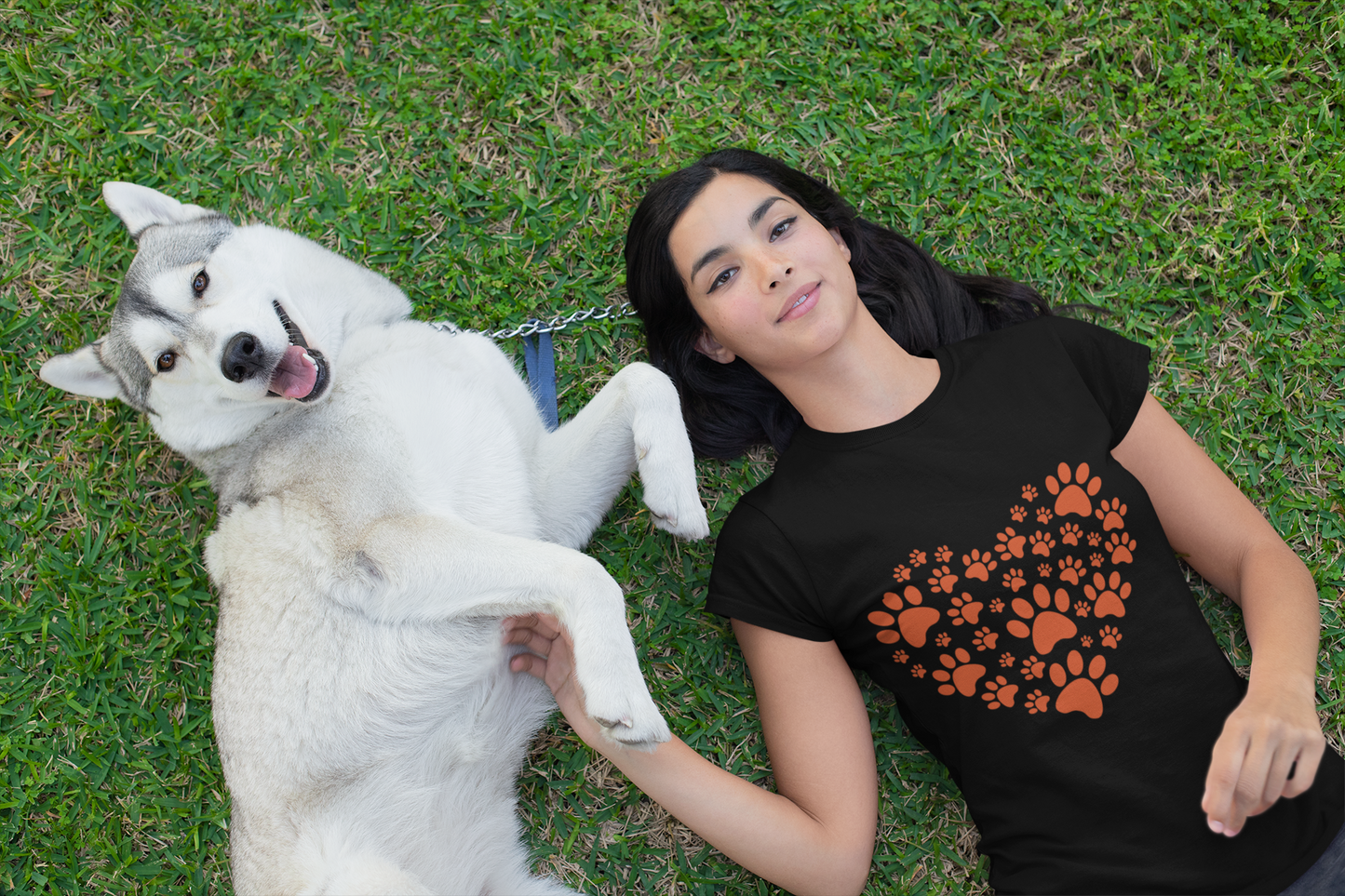 Orange Hearts Dog Paws Super Soft Gilden Tee