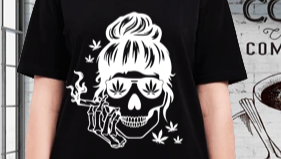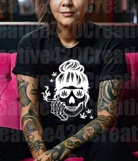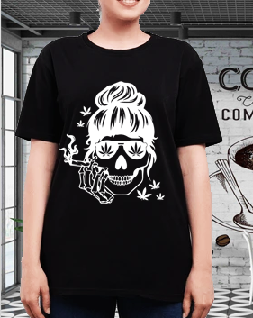 The custom DTF print on the shirt features a vibrant and detailed design, with rockabilly skull stoned mama design t shirt. The DTF printing process ensures that the design is durable and long-lasting, with a soft-to-the-touch finish that won't crack or fade easily.