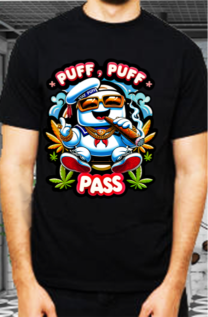 The custom DTF print on the shirt features a vibrant and detailed design on front with the Stay Puff Logo. The DTF printing process ensures that the design is durable and long-lasting, with a soft-to-the-touch finish that won't crack or fade easily.