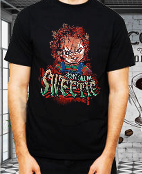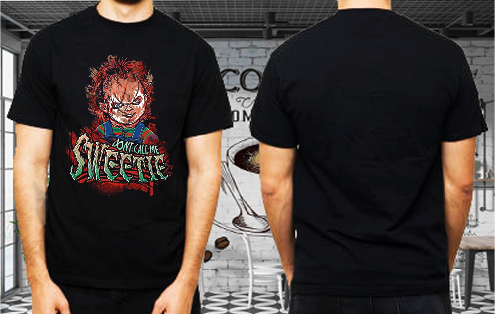 The custom DTF print on the shirt features a vibrant and detailed design on front with one of your all time favorite Horror slasher killers Chucky. The DTF printing process ensures that the design is durable and long-lasting, with a soft-to-the-touch finish that won't crack or fade easily.
